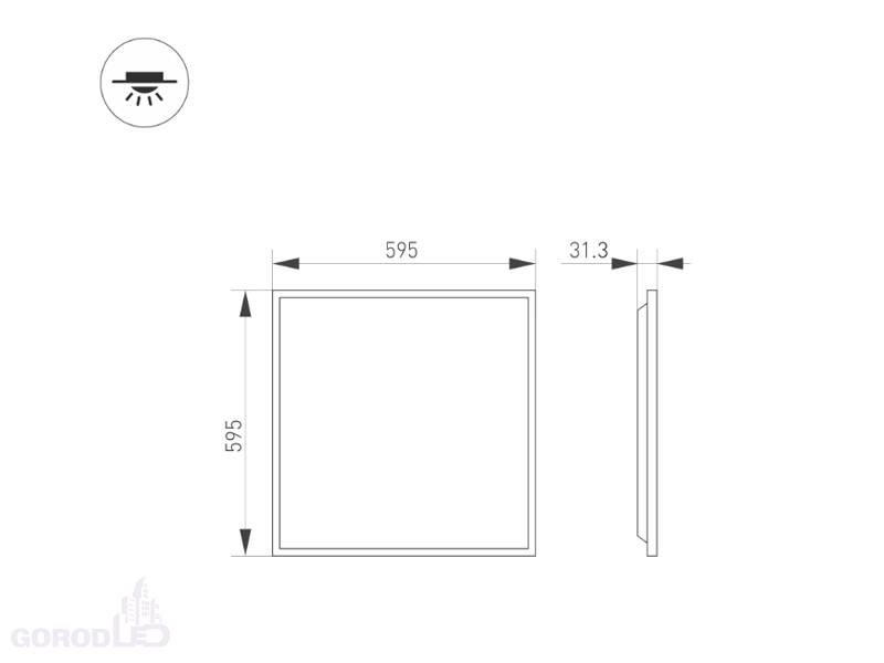 Светодиодная панель с прямой засветкой (backlit). Мощность 40 Вт, св. поток 4000 лм, 100 лм/Вт, дневной 4000 K, холодный 6000 К, CRI>90, угол 120°, напряжение питания 230 В. Белый квадратный корпус из алюминия, экран PS, степень защиты IP54. Размер: длина 595 мм, ширина 595 мм, высота 31,3 мм. Монтаж встраиваемый, установочное отверстие длина 575 мм, ширина 575 мм. Драйвер 28-40 В, 1000 мА, пульсация <1% со степенью защиты IP65, подключение с помощью герметичного коннектора.