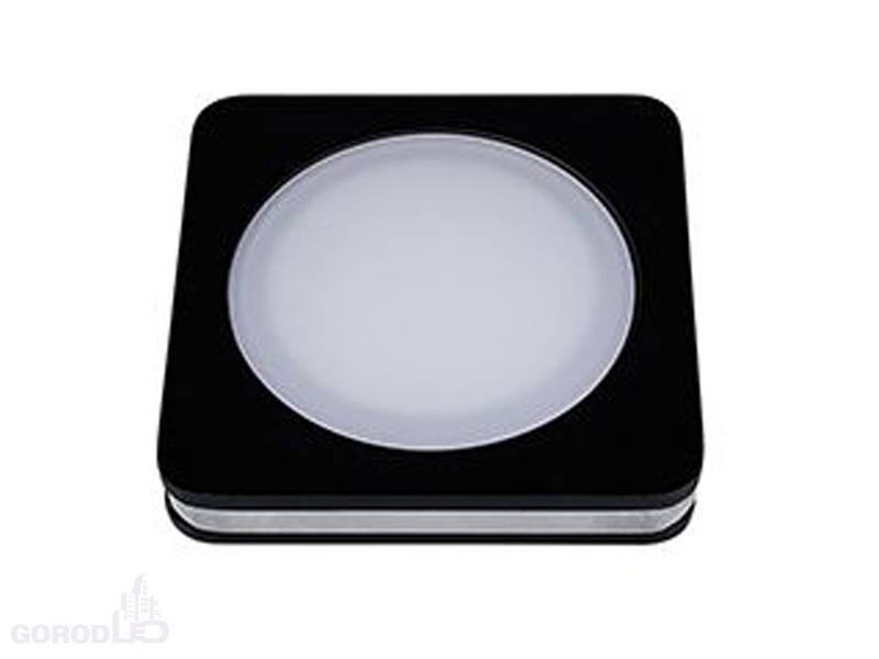 Квадратный светильник с контурным свечением. Корпус IP44 черный + вставка поликарбонат PC. Световой поток: Дневной белый, Теплый белый - 325 лм, угол 120°+180°. Питание 110-240VAC (драйвер в к-те 300mA 15-25V), мощность 5Вт. Размеры 80х80х40 мм, установка в отв.65х65 мм, высота мин.40 мм.