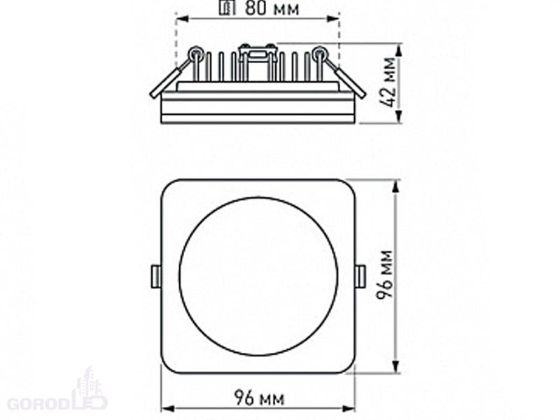 96 х 96 х 42 (диаметр врезки 80х80)