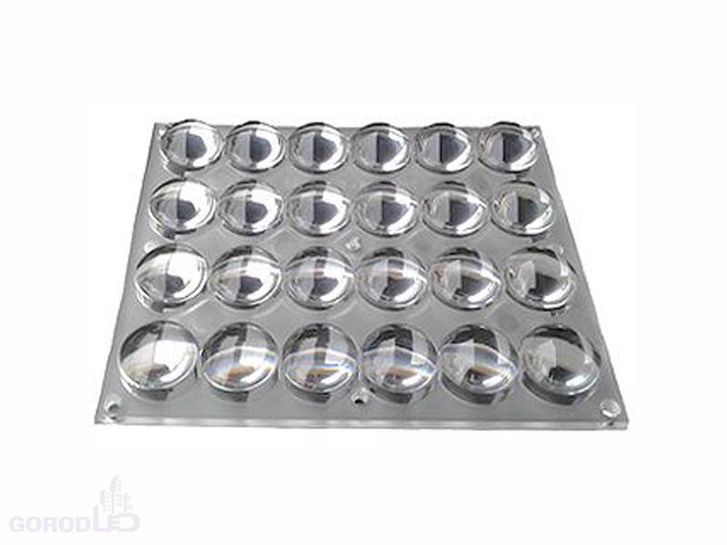Блок линз 4х6 для мощных светодиодов 'Emitter', CREE XP, smd до 5х5мм (24шт). Размер: 135x112 мм, H=13.5 мм. Угол: 60°. Используется с платой 124, 125. Крепление под винт.