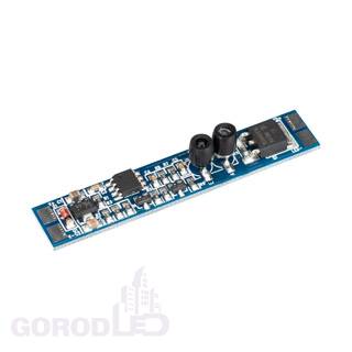 ИК-выключатель, встраиваемый в профиль, реагирует на открытие дверцы. При открытии дверцы - плавное включение света, при закрытии - выключение. Зона срабатывания до 10 см. Требуется вырез в экране профиля для работы датчика Ø5 мм (2 отверстия). Для профилей с внутренней высотой (пов. профиля - пов. экрана) до 10 мм. 12-24V, 8A. Размер платы 50x10x10мм, размер 1 вырезного отверстия 5х5мм.