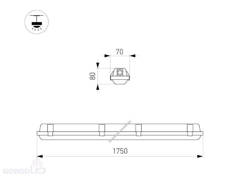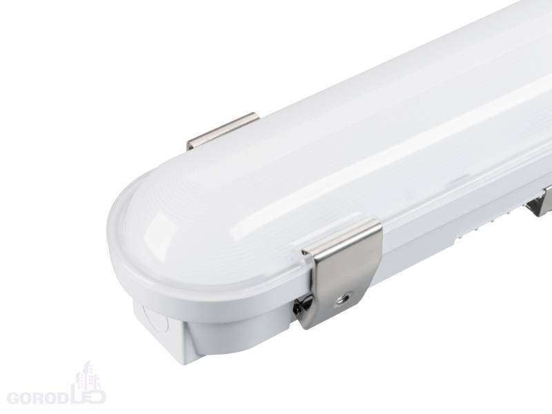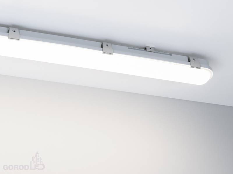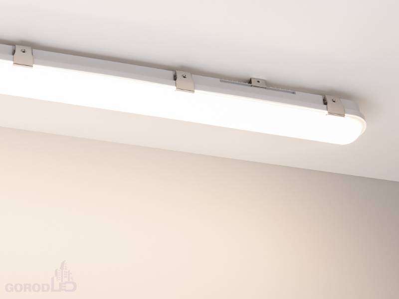 Влагозащищенный линейный светильник для использования в технических помещениях. Мощность светильника 60/56/46/36 Вт. (переключатель на корпусе драйвера). Цвет свечения ДНЕВНОЙ 4000К/ТЕПЛЫЙ 3000К/ХОЛОДНЫЙ 6000К (переключатель на корпусе драйвера), св.поток 8880-9360 лм, CRI(Ra)>80, угол свечения 120°. Корпус прямоугольный, белый пластик, влагозащищенный IP66. Ударопрочность IK08. Размер LxWxH 1750x70x80мм. Питание AC 220-240В, 60 Вт, драйвер встроенный. Температура применения -20°C...+50°C. Материал корпуса и рассеивателя - поликарбонат.