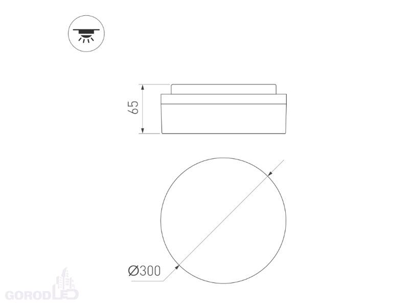 Накладной светильник с переключателем мощности 17/21Вт, белый круглый корпус (IK10). Встроенный микроволновый датчик движения. Дальность срабатывания 9,5м; время отключения и чувствительность датчика регулируется. Показатель защиты от пыли и влаги IP54. Цвет свечения БЕЛЫЙ ДНЕВНОЙ 4000К и ТЕПЛЫЙ 3000К (переключатель на корпусе), св.поток 2210-2830лм, CRI(Ra)>80, угол излучения 110°. Размер Ф300x65мм. Материал рассеивателя PC. Материал корпуса ABS пластик. Питание AC220-240V.