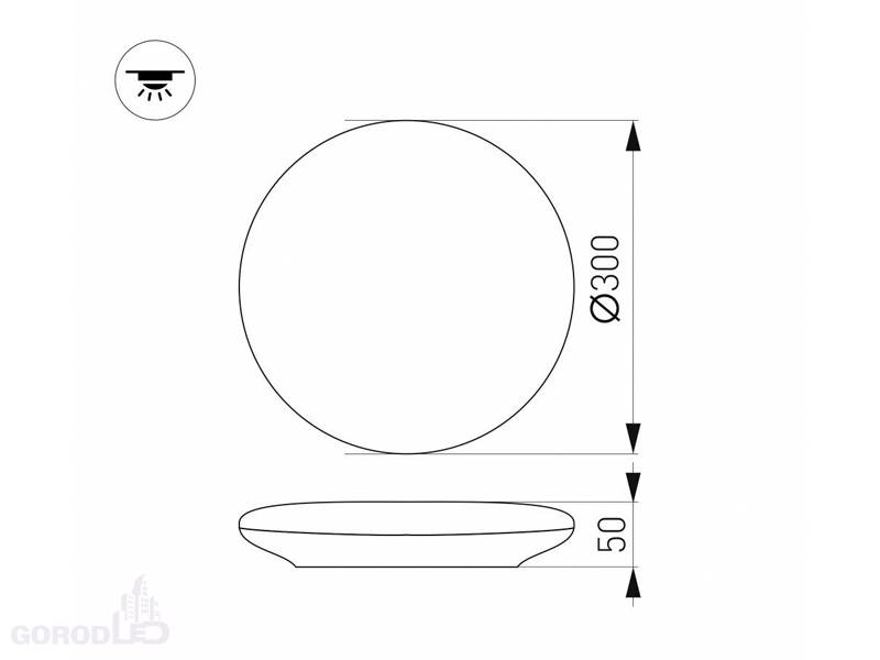 Накладной светильник 18Вт с переключением цвета свечения и диммированием. Белый круглый корпус (IK10). Цвет 3000К/4000К/5000К, св.поток 1790-1900лм, CRI(Ra)>80, угол 180°. Размер Ф300x50мм. Питание AC220-240V, 18Вт, драйвер встроенный (72V, 230mA). Диммирование по TRIAC.
